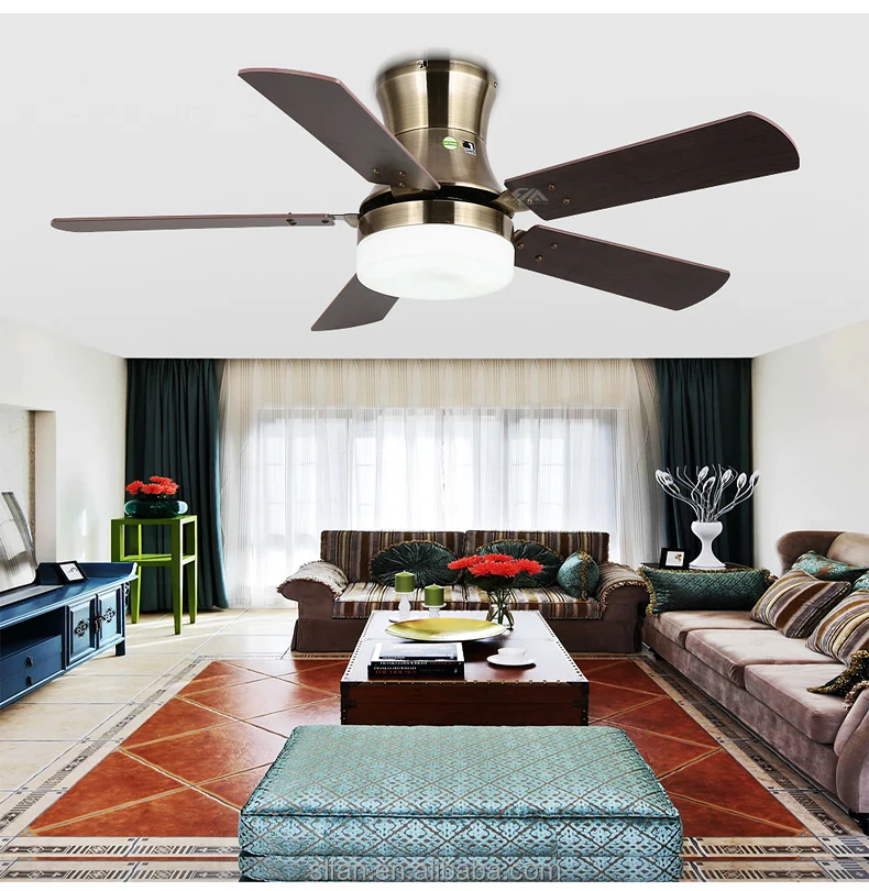 42 Inch Flush Mount Hugger Ceiling Fan Light With 5 Pieces Iron