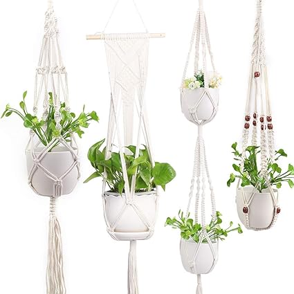 Xddias 4 Pack Macrame Plant Hangers Indoor Outdoor With 4 Hanging