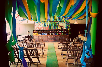 Fuchsia And Orange Streamers Over Ceremony